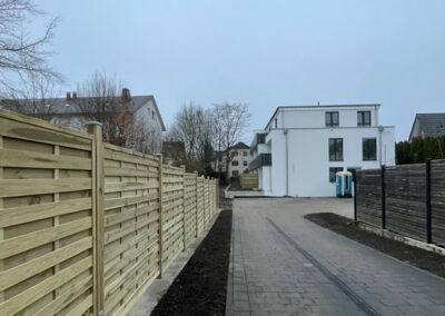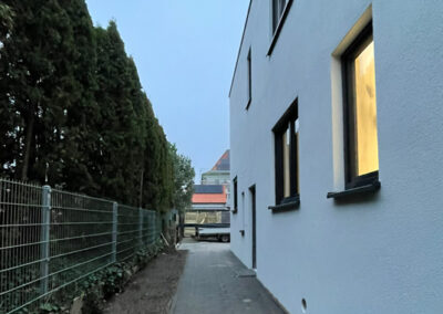 Für einen privaten Bauherrn steuern und überwachen wir den Neubau eines Mehrfamilienhauses mit acht Wohneinheiten im KfW-55-Standard. Das Bauvorhaben befindet sich in einer Hinterbebauung mit entsprechend wenig Freiraum für die Lagerung der Materialien sowie in einem Gebiet mit hohem Grundwasserspiegel.